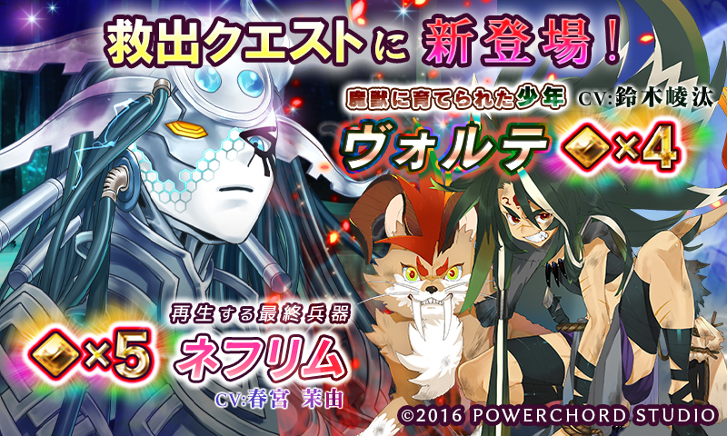 「ユバの徽」,救出クエストに新祈り人の★5ネフリムと★4ヴォルテが登場