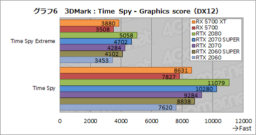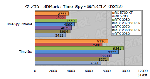 DirectX 12世代のテストである「Time Spy」から,グラフ5は総合スコアをまとめたものだ。
