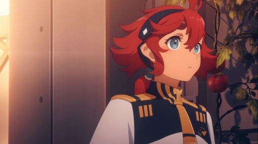 会社の事業が進展する中,シャディク・ゼネリ(CV:古川 慎)の手引きで,デリングの暗殺計画が進行し,地球の武装組織「フォルドの夜明け」の襲撃を受ける。母プロスペラ(CV:能登麻美子)に導かれたスレッタは,改修されたエアリアルで敵対勢力を撃退するのだった。