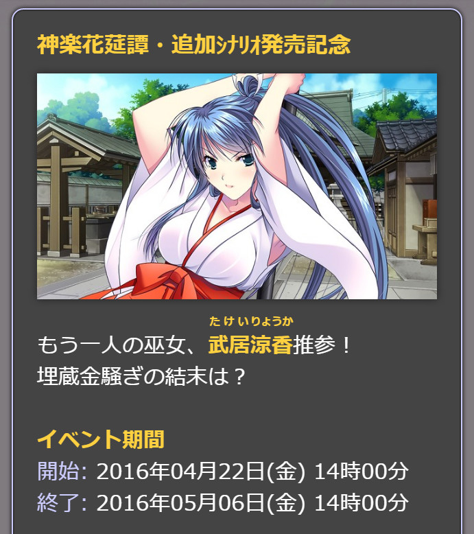 でぼの巣製作所が展開する神楽シリーズのキャラが一堂に会する。ブラウザゲーム「神楽大戦・陽之巻」のサービスが「にじよめ」(昼の部)で開始