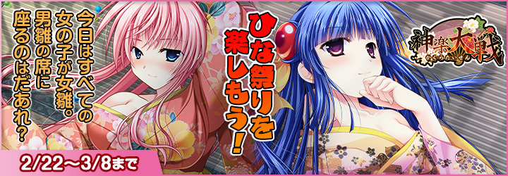 「神楽大戦・陽之巻」の雛祭りイベント。“SR鏑木紫”と“SR犬童ちはや”が期間限定で登場