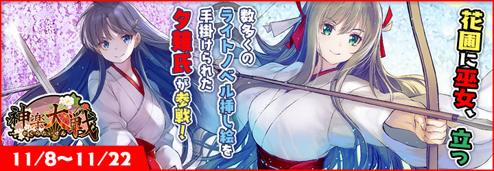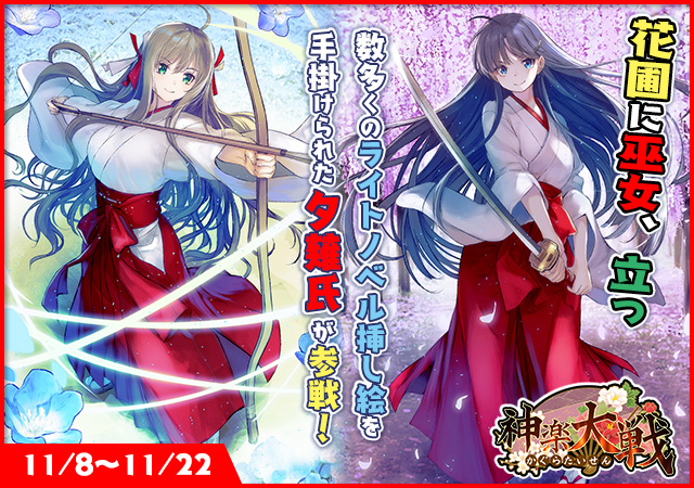 「神楽大戦・陽之巻」で期間限定イベント「花圃に巫女、立つ」が開始。新規SRに新堂 勇と八代 護
