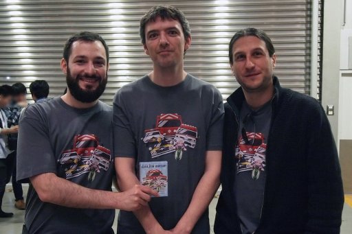 写真右からAntoine Bauza氏,Yannick Deplaedt氏,Corentin Lebrat氏。なお通訳は,Deplaedt氏に担当してもらった。ボザ氏「赤信号のときは横断歩道を渡らないように! 外国人がわたりそうになっていたら,クルマを運転している人はちょっと待ってあげてください。不思議なコメントですみません(笑)」