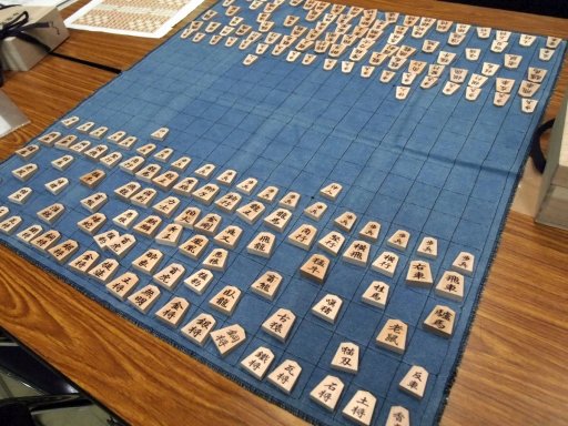 「大将棋」「大大将棋」「摩訶大大将棋」があるそうで,これは引き分けを減らすために,どんどん巨大化していった結果なのだそうだ。本将棋の元となった小将棋は,チェス同様盤面が狭いために引き分けが多く,これをなんとかするために本将棋が“取った駒の再利用”という発明を行った一方で,盤面を広くすることで解決を図ったのが,こうした巨大将棋というわけだ。