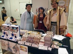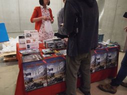 【すごろくや】今年でオープン10周年となったすごろくやからは,「カスカリアの英雄」「キャッスルクラッシュ拡張:キューブとカード」「バンド改造計画」「ブリックパーティ」などの輸入ゲーム(日本語マニュアル付き)が多数出展されていた。原始人語(?)でプレイする「あーぎ!てくと」はぎりぎり間に合わず,販売はゲームマーケット後になる模様 |