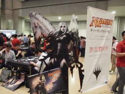 【マジック:ザ・ギャザリング】1年前から出展が行われるようになったTCGジャンルから,「マジック:ザ・ギャザリング」のブースを紹介。人気は圧倒的で,体験卓は午前中で予約が一杯になってしまっていた。未経験プレイヤー向けのティーチングキャラバンも開催されており,構築済みウェルカムデッキの無料配布もあった |