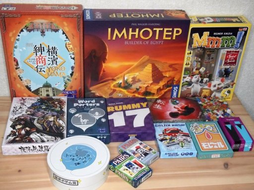 今回,筆者が買ったゲーム一覧。だいぶ少ないほうかな……。だいぶ我慢したし,欲しかったけど売り切れてたゲームもあったし。気がついたらReiner Knizia氏タイトルが多数。あと,なぜかトイレゲーも2つあり
