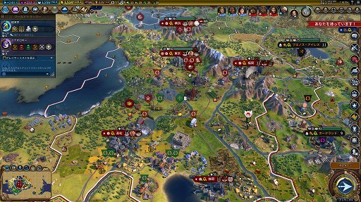 要は,神の出力で勝利条件を高速達成されてしまう前に,6文明をどうにかする遊びになってくるのだが,先に紹介したAIの「得意なことを優先する」挙動が導入されたことにより,この文明数でもどうにか出し抜けるようになった。自分が戦争を担当して,友人には全力で宗教を広めてもらうなど,役割分担をして勝利できたときは達成感があって楽しいので,「今日は1日,友達とCiv6やるぞ!」といった時間が取れる人は,試してみてほしい。