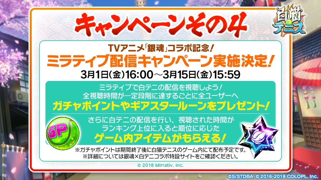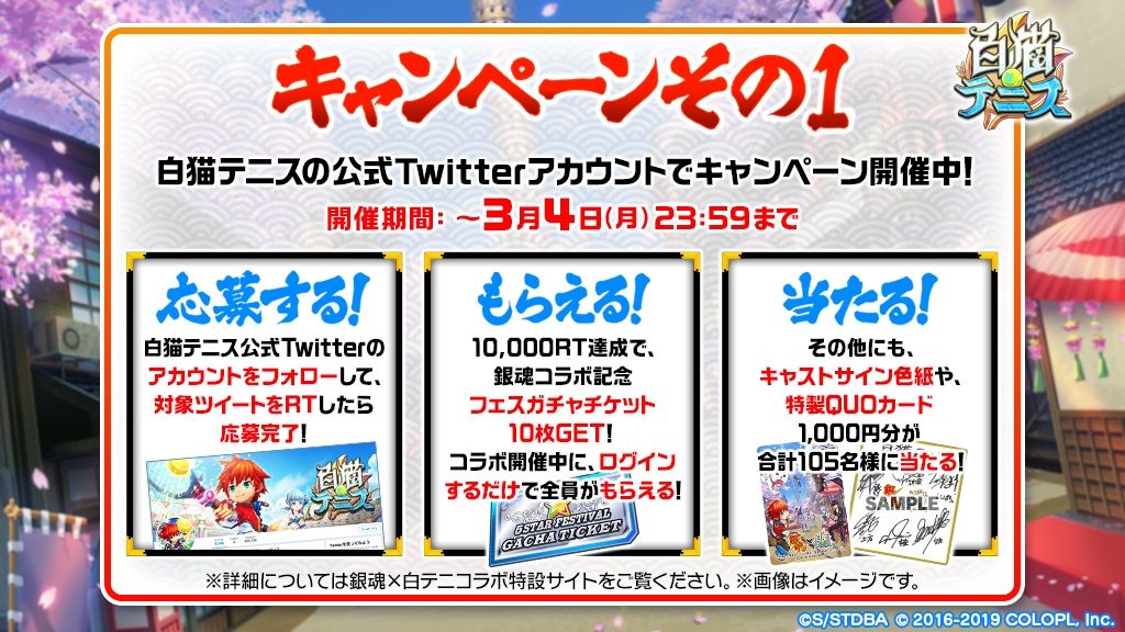 「白猫テニス」でTVアニメ「銀魂」コラボがスタート。記念の各種キャンペーンも