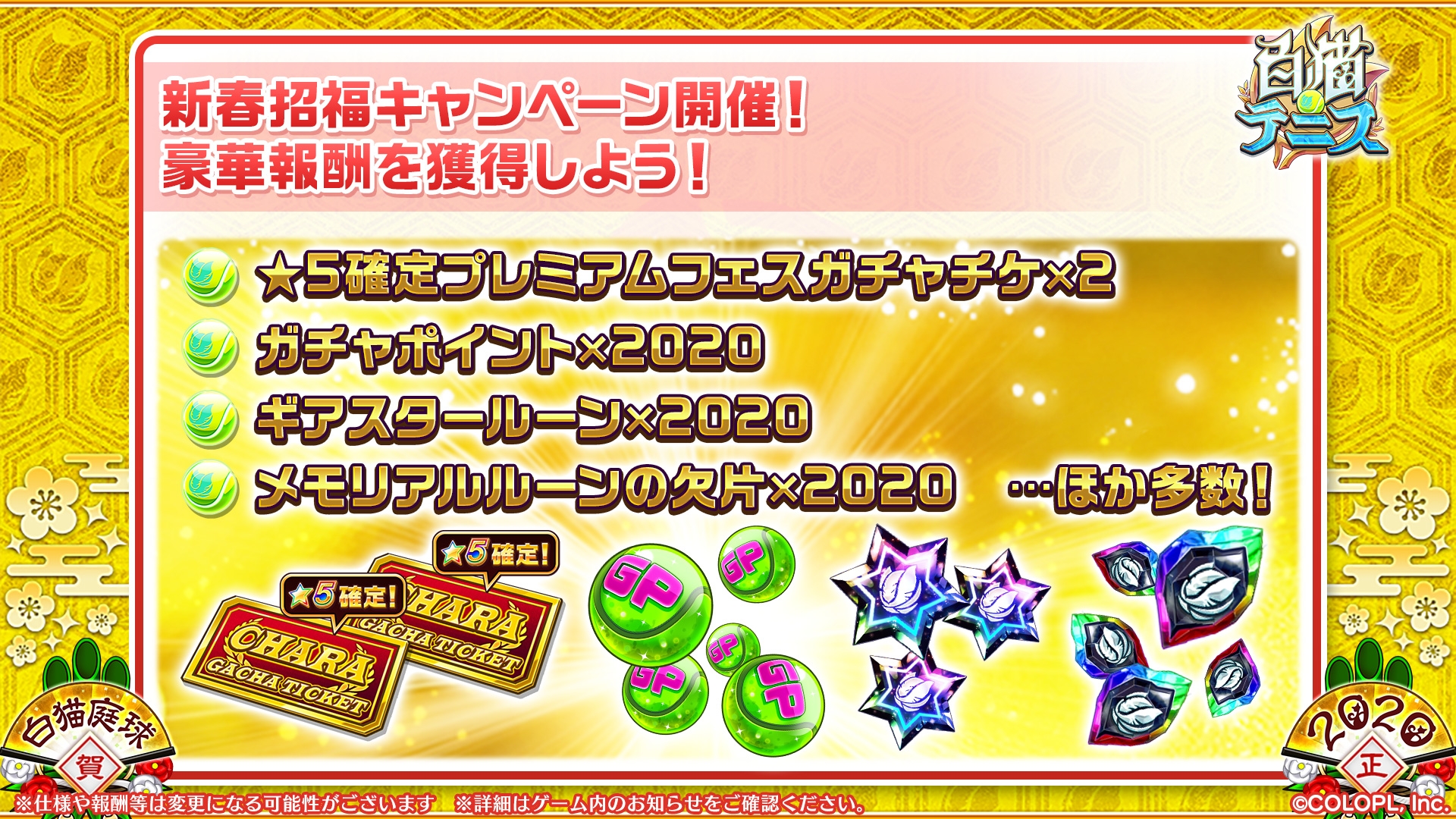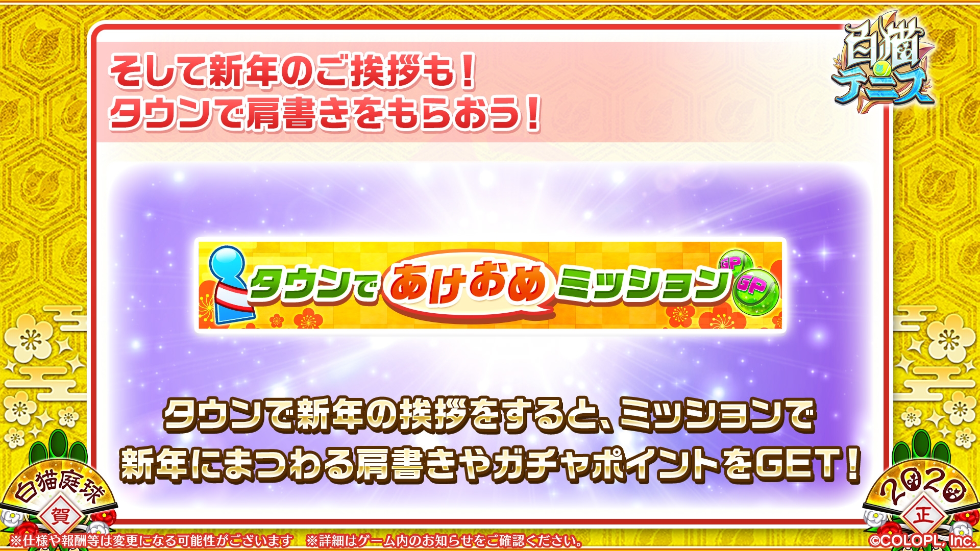 「白猫テニス」の大型アップデート「白猫テニス Ver2.0」が始動。新春招福キャンペーンを実施
