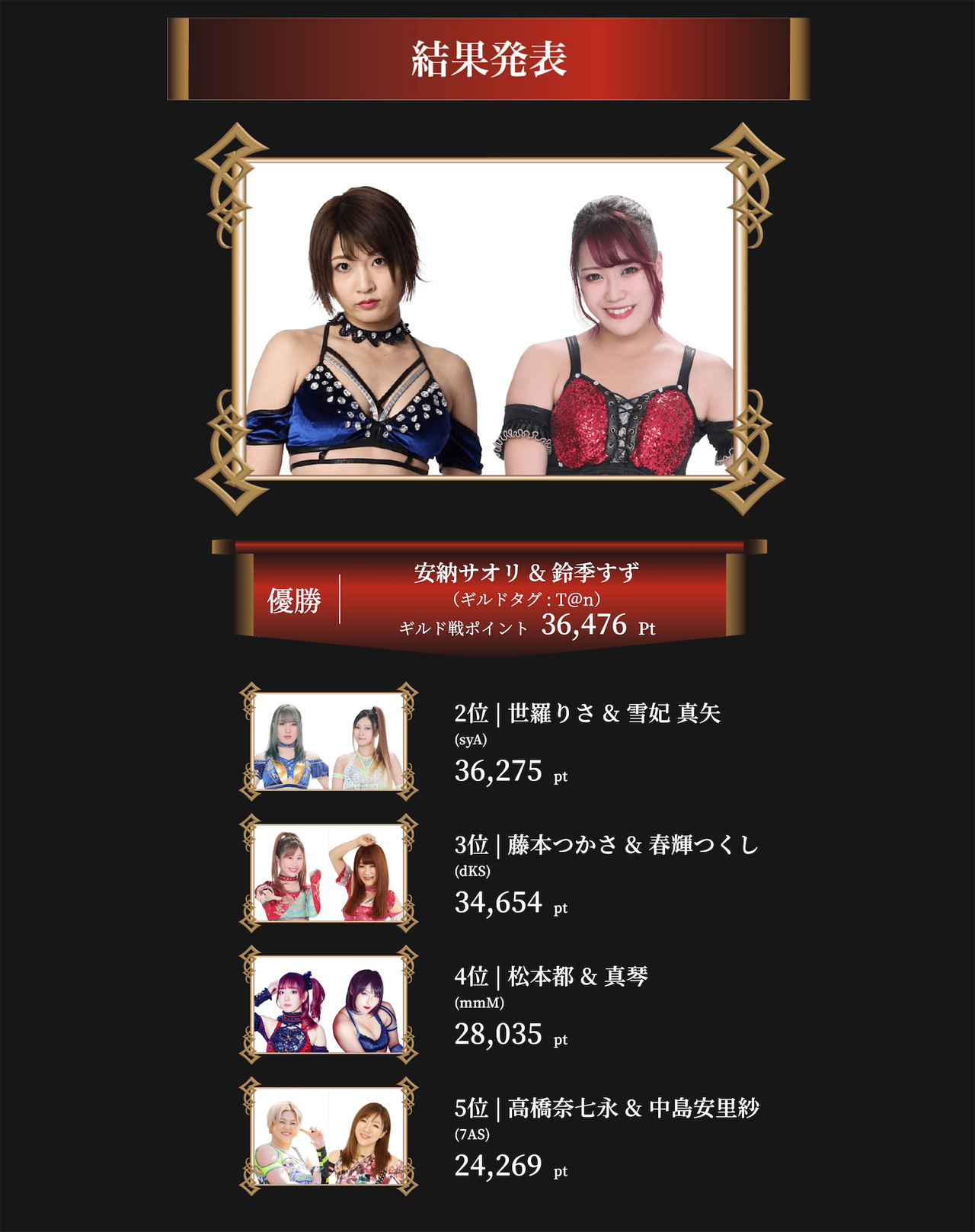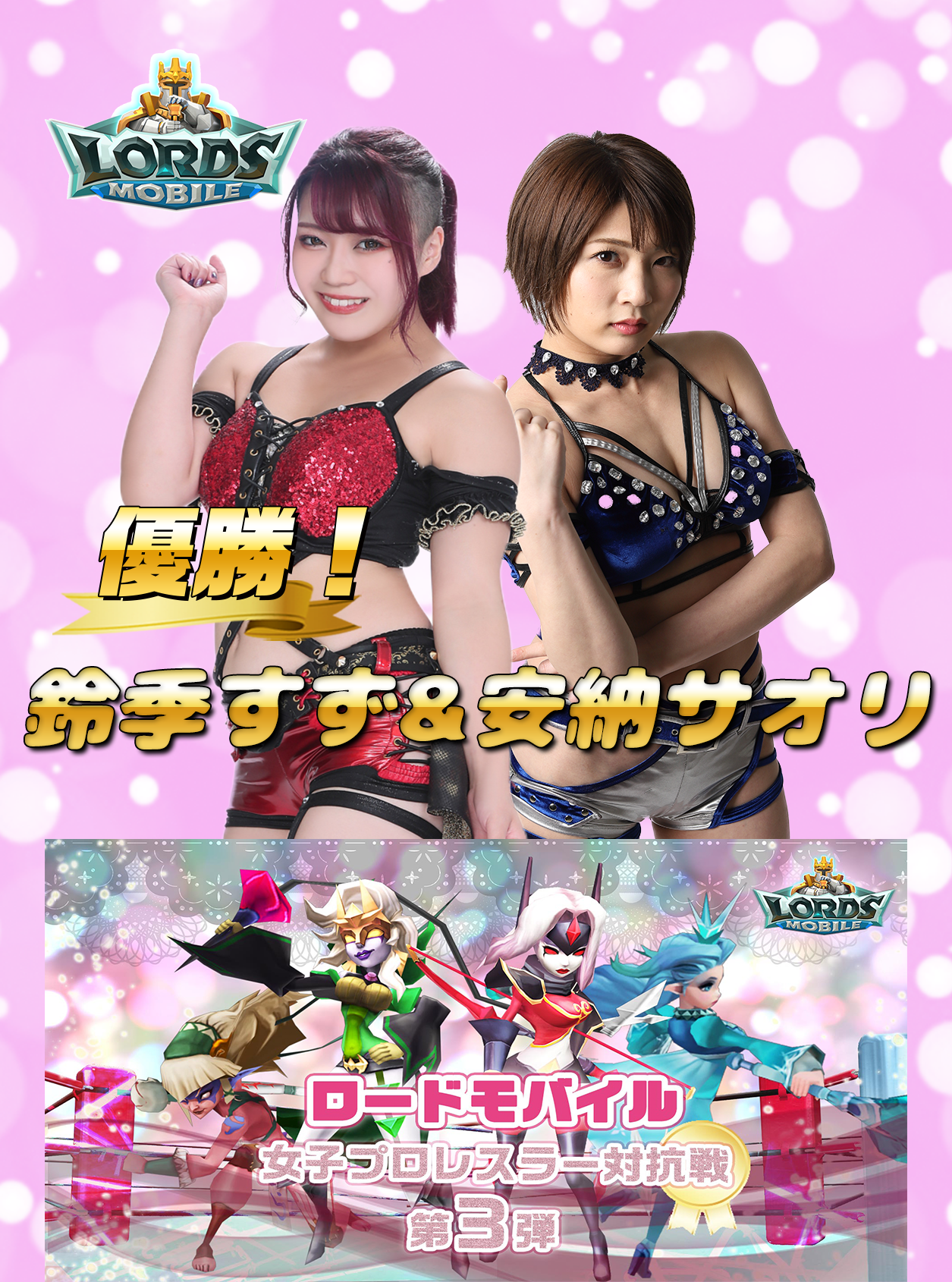 「ロードモバイル」のイベント“女子プロレスラー対抗戦第3弾”で安納サオリ&鈴季すずが優勝