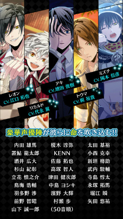【CAST】内田雄馬/江口拓也/榎木淳弥/太田基裕/岡本信彦/置鮎 龍太郎/梶裕貴/KENN/小西克幸/酒井 広大/佐藤拓也/新垣樽助/杉山紀彰/高塚 智人/武内駿輔/立花 慎之介/津田健次郎/寺島惇太/鳥海浩輔/中島ヨシキ/永塚 拓馬/羽多野渉/濱野 大輝/堀江瞬/前野 智昭/増田俊樹/村瀬歩/矢田悠祐/山下誠一郎/代永翼(五十音順)