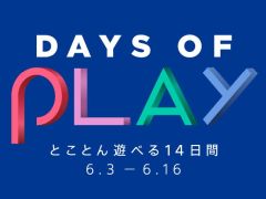 SIEはスペシャルセール「Days of Play」キャンペーンを,2020年6月3日から16日までの期間実施する。セールにはPS4本体やPSVRのスペシャルパッケージがラインナップされているほか,DL版「DEATH STRANDING」「Predator: Hunting Grounds」「Days Gone」などがセール対象となるようだ。