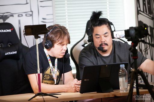 実況・解説は,鉄拳大会では恒例となるゲンヤ氏とハメコ。氏が担当。もちろん英語配信用の実況席も用意されていた