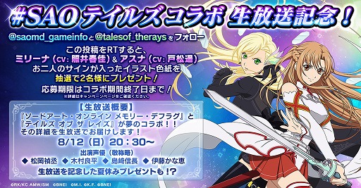 「SAO メモリー・デフラグ」×「テイルズ オブ ザ レイズ」,相互コラボイベントが開催決定