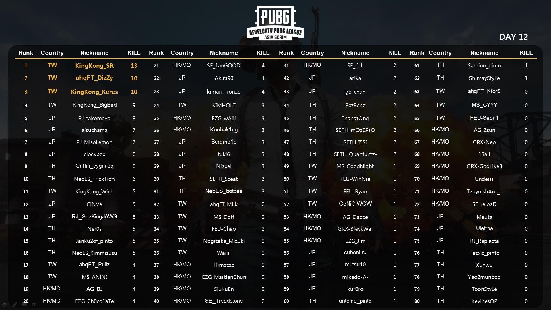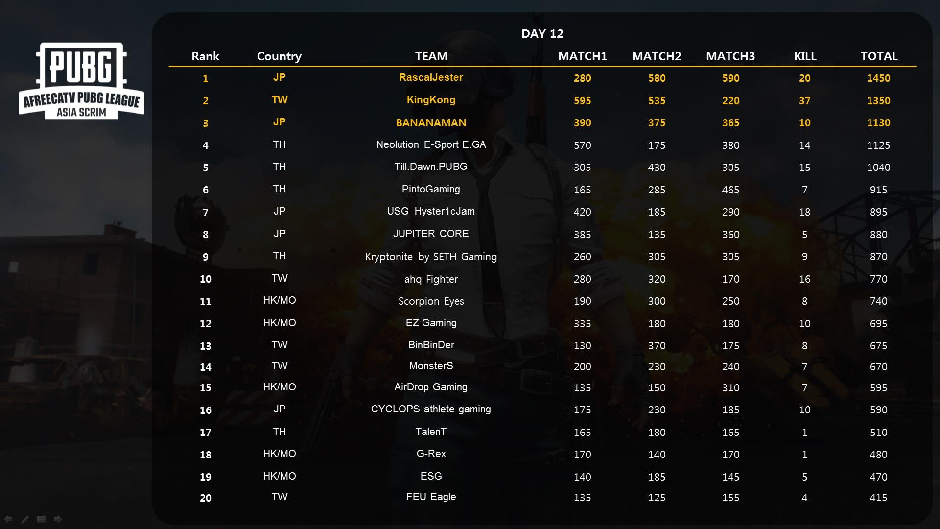 6月12日の第13回「PUBG League Asia Scrim」に出場する日本代表チームが公開