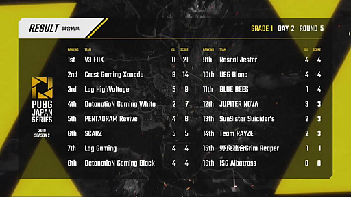 PUBG JAPAN SERIES Season2 Grade1 Phase1 Day2写真館