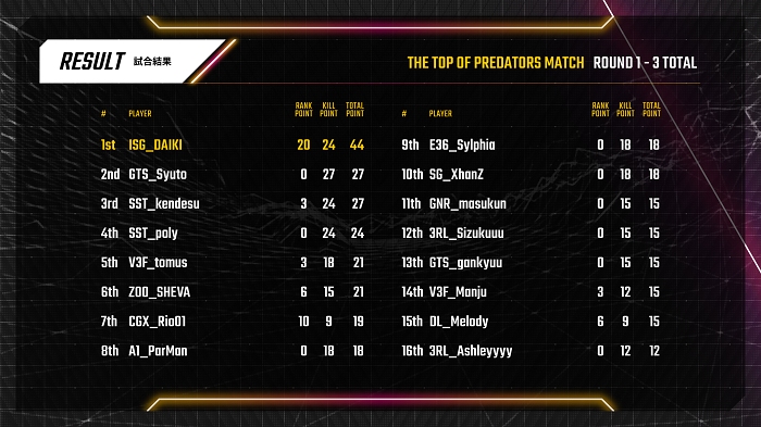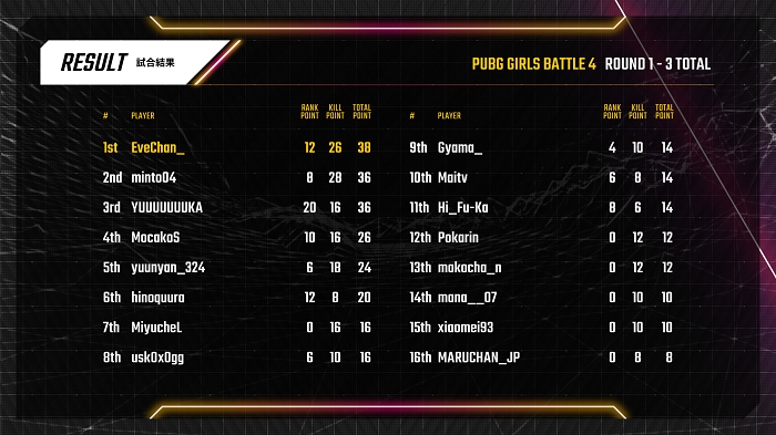 PC版「PUBG」のイベントマッチ・PJS event match week Powered by PREBEARの結果が公開