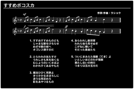 当時,ボコスカウォーズの説明書に書かれていた歌詞に,声を当てた「すすめボコスカ」。本作では,”桃井はるこ”の唄声を再収録し,ある条件を満たすことで唄声が流れます。