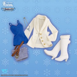 冬の装いではあるものの、青のキャミソールやショートパンツ、クリスタルをイメージしたネックレスなど、使い回しにも重宝しそうなアイテムが満載。白いコートはワイヤー入りで、固定してイラストのような表現をする事も可能。