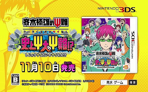 ■ニンテンドー3DS用ソフト「斉木楠雄のΨ難 史上Ψ大のΨ難!?(さいきくすおのさ いなん しじょうさいだいのさいなん)」PV 後編本日公開!