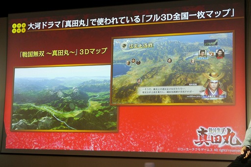 「フル3D全国一枚マップ」の技術を大河ドラマの「真田丸」に提供し,襟川氏はこのマップを監修している。ゲームの世界で培った映像技術がTVに役立つということで,襟川氏は大いに感激したそう。また,レベルファイブの