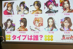 次のコーナーは,キャスト陣の熱意がほとばしるトークから一転,登壇者の男性陣と女性陣に,それぞれ好みの異性キャラクターを聞くという砕けた内容に。真田信之や石田三成といったイケメンが並ぶ中,高野さんは,信頼でき,側にいてほしい人物ということで