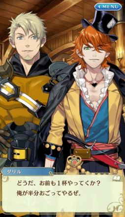 ![]() グランツとダリルはお酒好き。グランツがダリルを飲みに誘うことも。他のスレイヤーたちはお酒に強いのだろうか? |