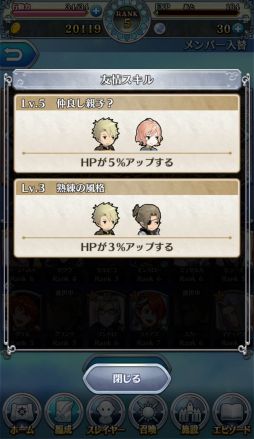 ![]() 友情スキルでパワーアップ! キャラクター同士の関係性によって友情スキルがあり、バトルのステータス上でも大きく関わってくるポイント |