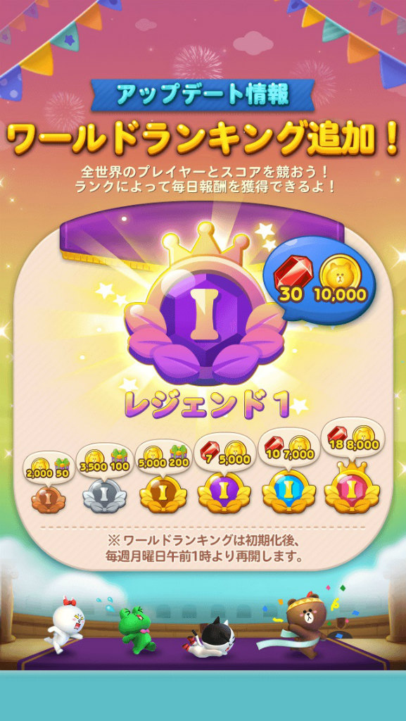 「LINE ラッシュ」ワールドランキングが追加。ガチャも全5種にリニューアル