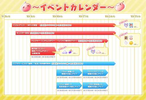 「NPCの復讐」イベント を開始いたしました。 パズルイベントの他、 かわいらしい頭装備「 マイケルバニー 」や貴重な「 キラキラした紙片 」を入手できる「 モンスター討伐 」など、 さまざまなイベントを実施いたします。