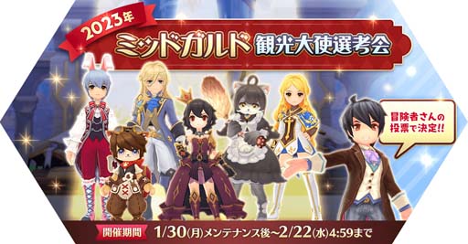 冒険者の投票で決める「2023年ミッドガルド観光大使」や「ポコポコポリン」等のイベントを開始いたしました。