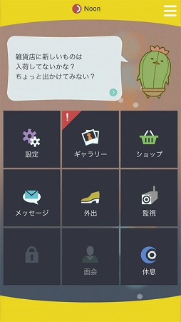 この「SABOT」内でガイド役となるのがサボテンを模したキャラクター「サボちゃん」。監視や外出で何かイベントが発生していたり、重要な話題を持っている時にオススメしてくれるなど、あなたと彼のコミュニケーションを親切にガイドしてくれます。