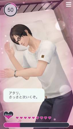 プロローグをクリアすると,本編とは異なる遊びとして,“妄想の中の”寝ている彼を気持よく起こすミニゲーム「夢アプリ」が楽しめます。ルールはとっても簡単。制限時間内にハルトの“気持ちいいトコロ”をタッチして,ゲージを満タンにするとクリア。彼が気持よく起きられるように,タッチしましょう。