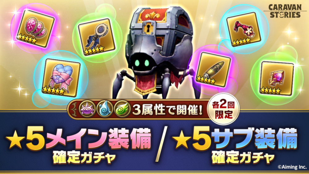 「CARAVAN STORIES」,風・水・闇属性が出現する「☆5装備確定ガチャ」を開催
