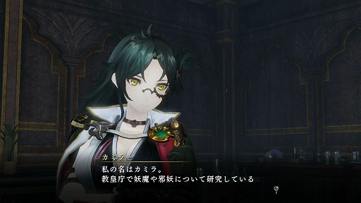 アルーシェを半妖として蘇らせたカミラ。ただの研究者かと思いきや,銃をとって共に戦ってくれる