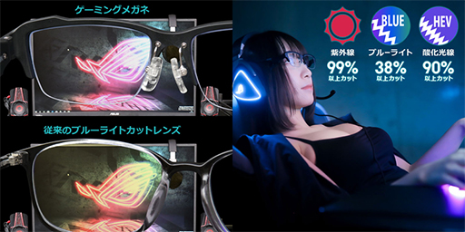 ゲーマーの多くが悩む、「目の疲れ」。その原因の一つとなり得るのが、モニターから発せられる有害光線です。長時間集中して画面を見続けるゲーム中は、ブルーライトをカットするPCメガネの着用が有効と言われています。しかしながら、一般に販売されているものはレンズの黄みが強く見え方に影響がでることや、ヘッドホン装着時にフレームが干渉して耳が痛くなることがほとんどでした。