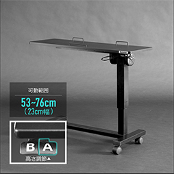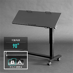 天板はゆったりワイドな幅90cm。キーボード設置はもちろん、マウス操作も余裕のあるサイズ感です。ベッドの横から差し込んでも、テーブルに設置したデバイスを身体の中心まで持ってくることができます。一方で、天板奥行きは30?にスリム化し、ベッドの上で邪魔になりにくいよう配慮しました。角度調節も天板を掴んで、無理なく操作できます。