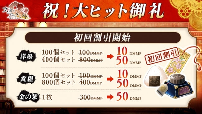 「文豪とアルケミスト」文豪同士のやり取りも楽しめる新コンテンツ「手紙」が実装。「洋墨」「食糧」「金の栞」の初回購入時を対象とした割引も
