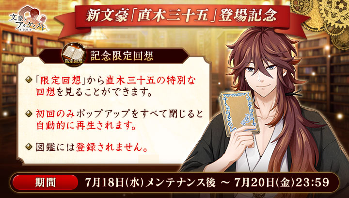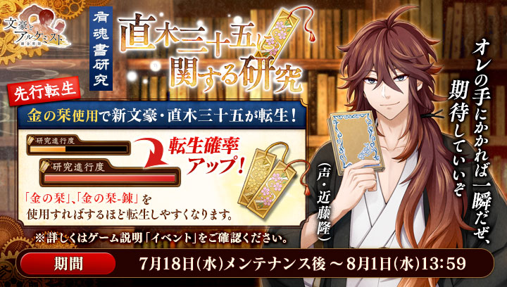 「文豪とアルケミスト」,転生イベント「有魂書研究−直木三十五に関する研究−」を本日開始
