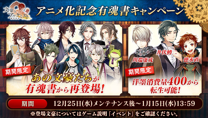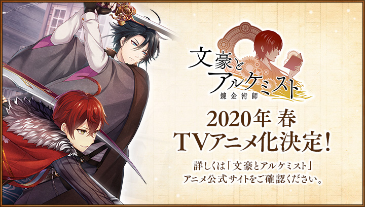 「文豪とアルケミスト」のTVアニメ化が決定。2020年春からの放送でゲーム内では記念のキャンペーンがスタート