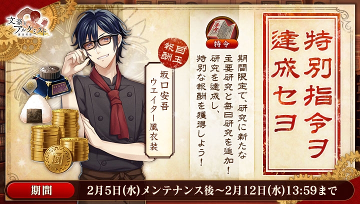 「文豪とアルケミスト」,期間限定研究「特別指令ヲ達成セヨ」が本日スタート