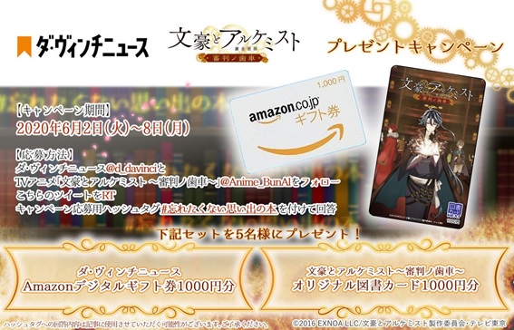 TVアニメ「文豪とアルケミスト 〜審判ノ歯車〜」の8話以降は7月3日より再開。1〜7話を一挙配信