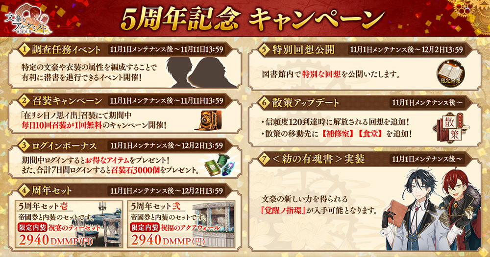 「文豪とアルケミスト」5周年記念キャンペーンが開催。新コンテンツも実装