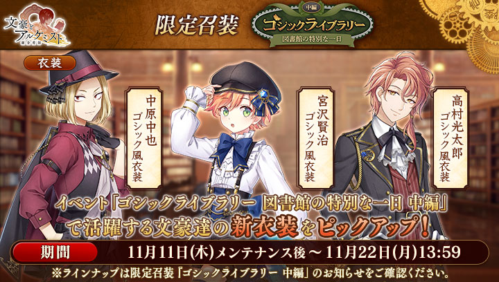 「文豪とアルケミスト」で“ゴシックライブラリー 中編”のイベント&限定召装が開催
