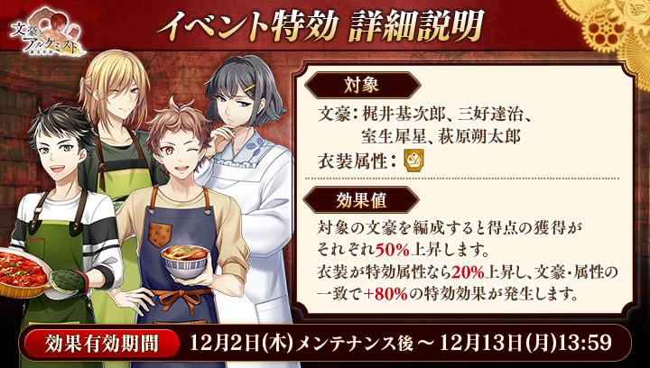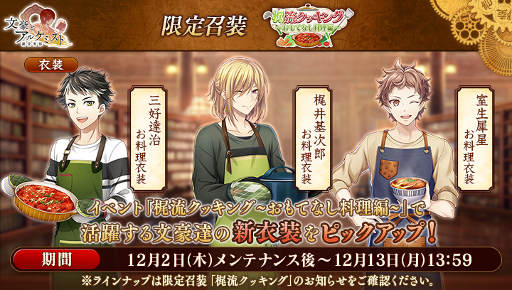 「文豪とアルケミスト」イベント“調査任務「梶流クッキング 〜おもてなし料理編〜」”が開催