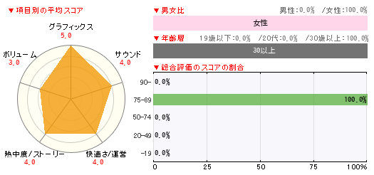 グラフィックス サウンド 快適さ/運営 熱中度/ストーリー ボリューム 5 4 4 4 3
