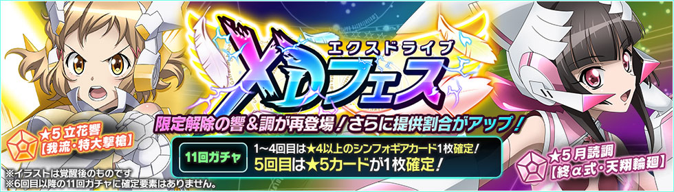 「戦姫絶唱シンフォギアXD」,限定解除ギアの立花 響と月読 調がピックアップされる「エクスドライブフェス」を開催