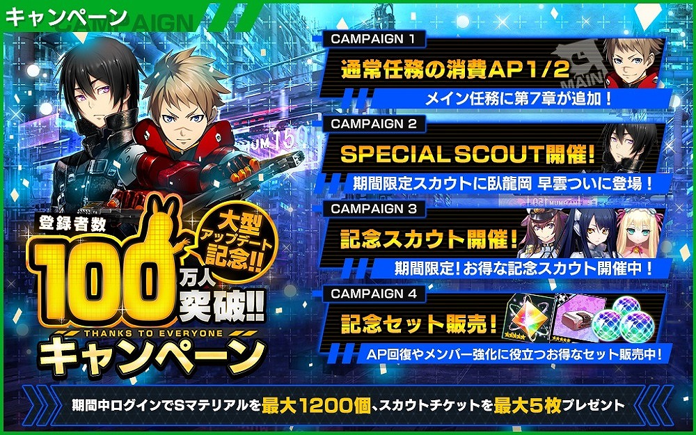 「凍京NECRO SUICIDE MISSION」,登録者100万人突破と大型アップデートを記念したキャンペーンを実施