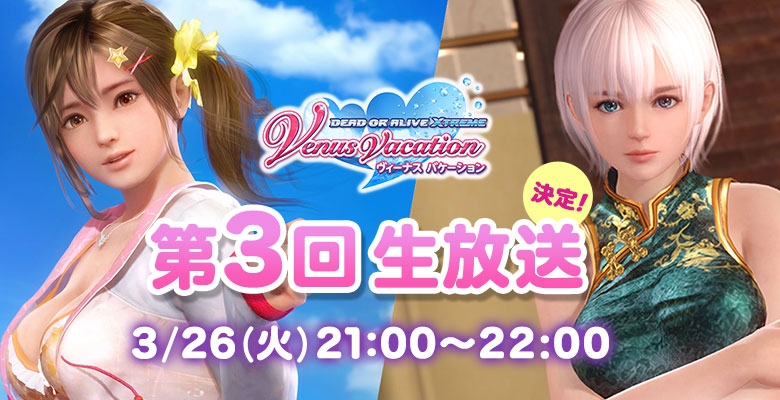 「DOAXVV」,第3回公式生番組「オーナーさん大集合!ヴィーナスだらけの春休み」が3月26日に配信